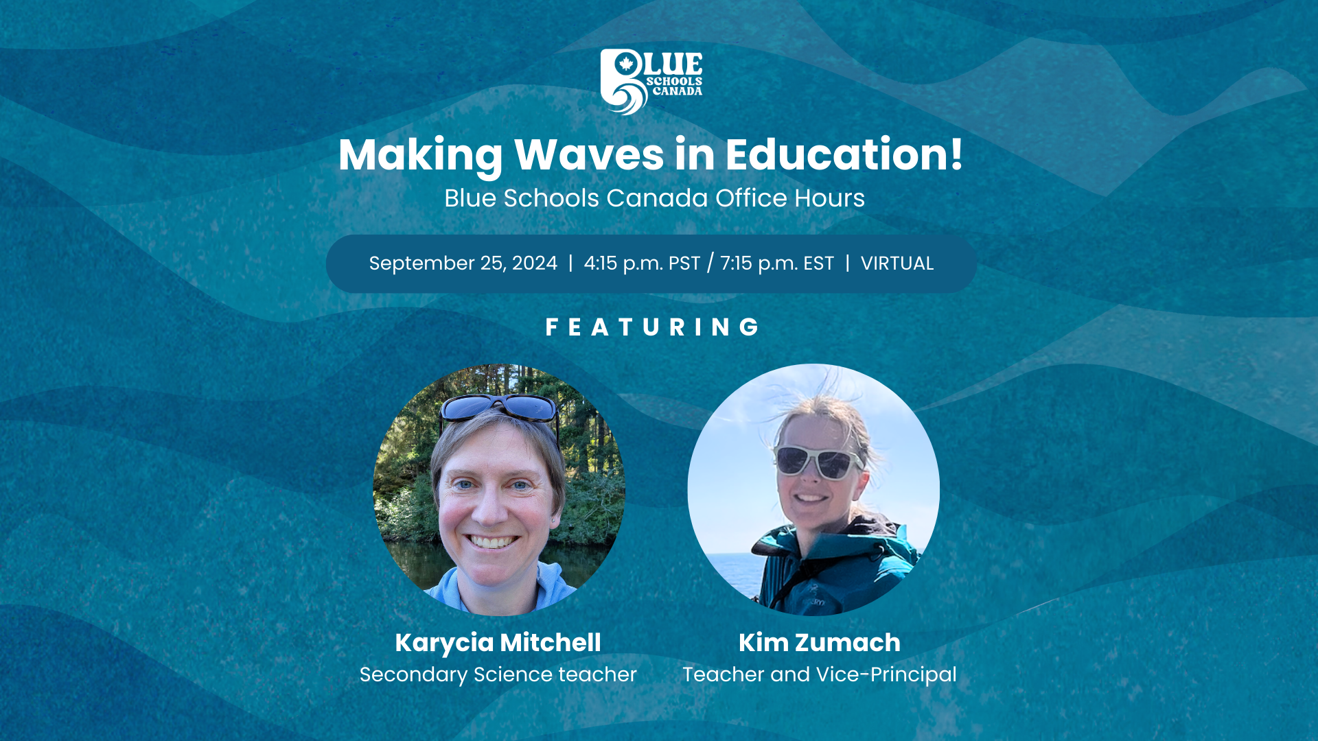 Welcome back! We’re excited to start the school year by honouring two exceptional teachers. These educators have made significant strides in ocean and freshwater education through our Blue Schools Canada grant program. Last year, teachers from coast to coast applied for funding to create engaging learning experiences addressing local water issues. Join us as we celebrate the achievements of two grant recipients at our kickoff event.